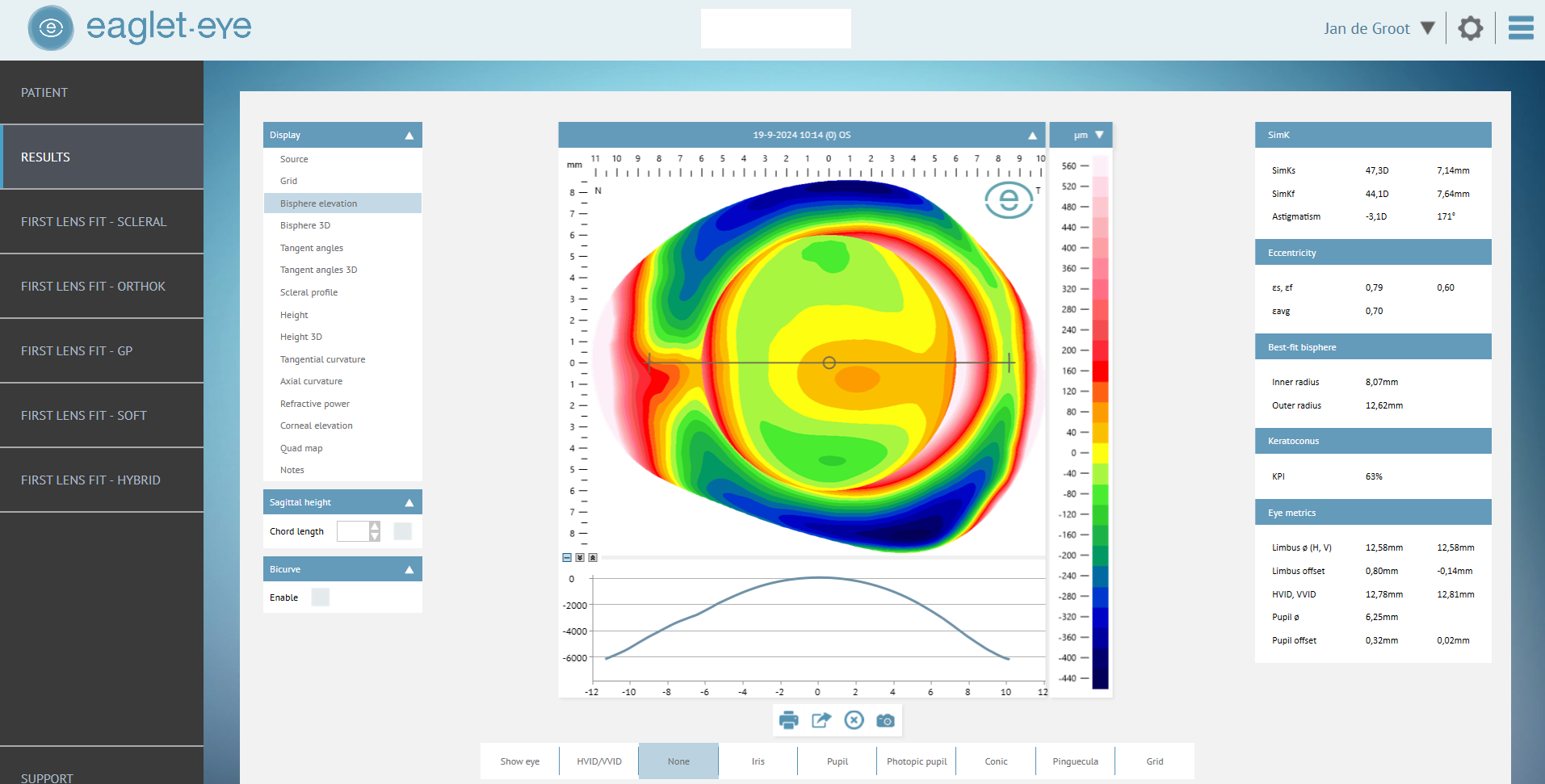 We verwerken de meetgegevens van de Eaglet Eye Surface Profiler (ESP) in een speciale database. De eerste ideale aanpassing van de scleralens wordt direct zichtbaar en de optometrist kan de lens op alle punten aanpassen.